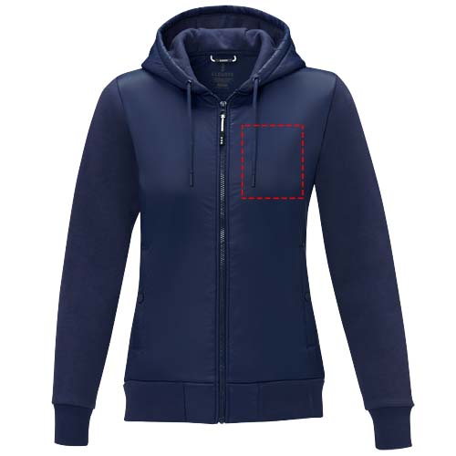 Darnell hybridjacka för damer - en perfekt kombination av stil och funktionalitet. Delvis tillverkad av 38 g/m² dull cire 380T nylonväv vilket garanterar hållbarhet och en lätt känsla. Kontrasttyget är ett stickat tyg av bomull och polyester (345 g/m²) som ger komfort och rörelsefrihet. Jackans insida är borstad vilket ger extra värme och en mjuk känsla. Jackan är försedd med en innerficka som ger praktisk förvaring av dina viktigaste saker. De flatstickade elastiska ribbade muddarna och nederkant ger en bekväm och säker passform vilket ger en touch av förfining till den övergripande designen. Darnell hybridjacka är ett perfekt val för vardagsbruk och avslappnade tillfällen. Jackan har en figurnära passform som ger en feminin look.