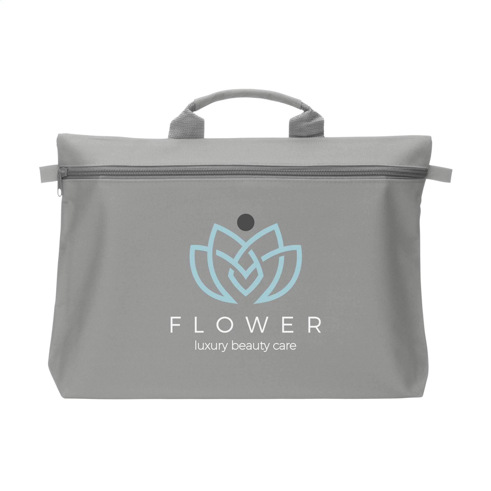 Mångsidig dokumentväska tillverkad av 600D polyester med förstärkt handtag och dragkedja i full bredd.