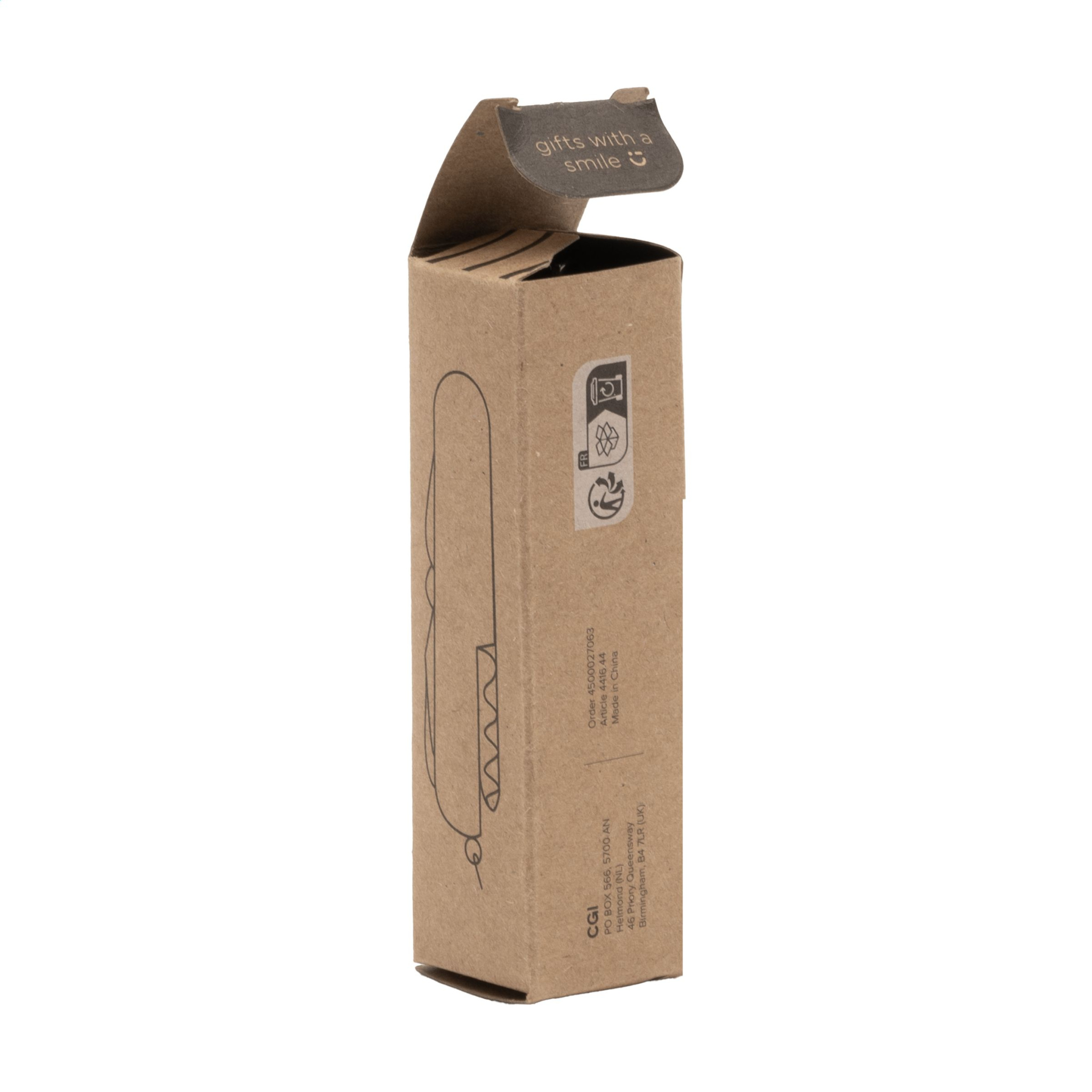 Fickkniv med handtag av bokträ. 8 delar med 11 funktioner: kniv, korkskruv, konservöppnare, flasköppnare med liten skruvmejsel, stjärnskruvmejsel, sax, fil, fiskfjäll, krokborttagningsverktyg, syl. Med nyckelring. Observera att lokala regler kan gälla angående innehav och/eller bärande av knivar eller multiverktyg offentligt. Varje artikel levereras i en individuell brun kartong.