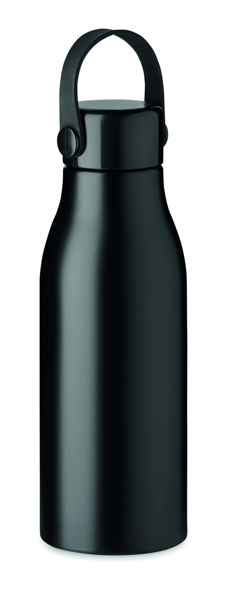 Enkeltväggig aluminiumflaska med ABS-lock med silikonhängare. Kapacitet 650 ml.