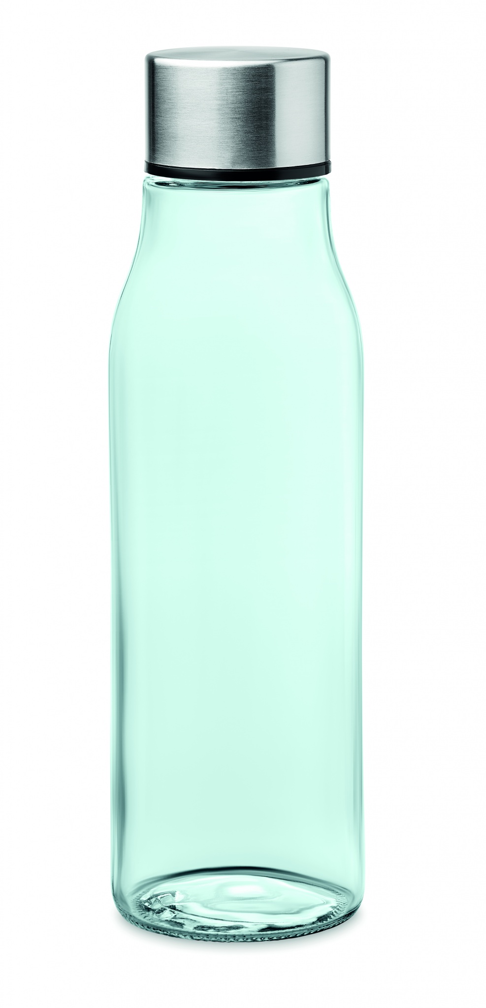 Flaska i glas med robust rostfritt stållock. Volym: 500 ml. Ej lämplig för kolsyrade drycker. Läckagefritt.