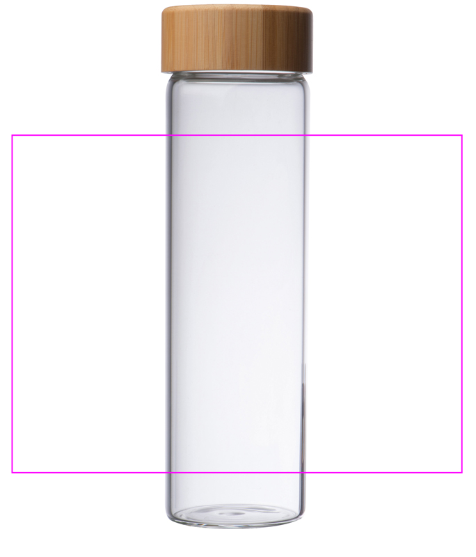Glasflaska med bambulock och 500ml fyllningskapacitet. Din logotyp kommer att graveras på locket.