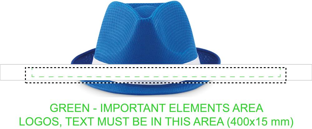 Färgad stråhatt i polyester med vitt band. Otryckt order levereras banden omonterade på hatten.