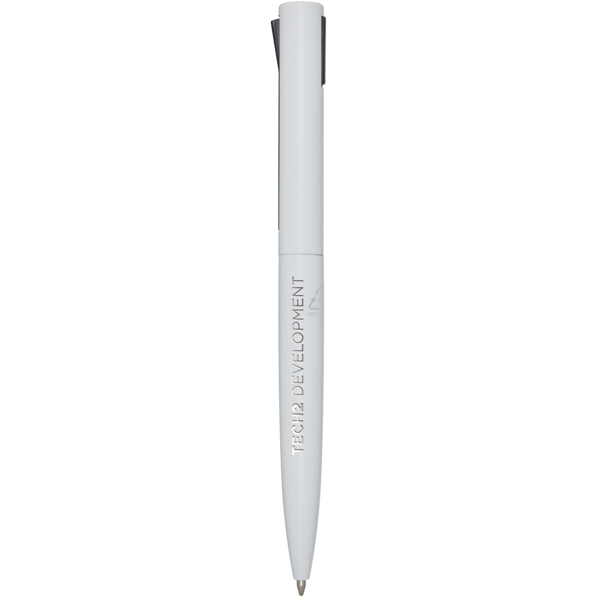 Kulspetspenna med övre pennkropp av återvunnen plast och nedre del av återvunnen aluminium. Klämman är tillverkad av järn. Bläckfärg: Svart. Skrivlängd: 1000 meter. NIB-storlek: 1,0 mm.