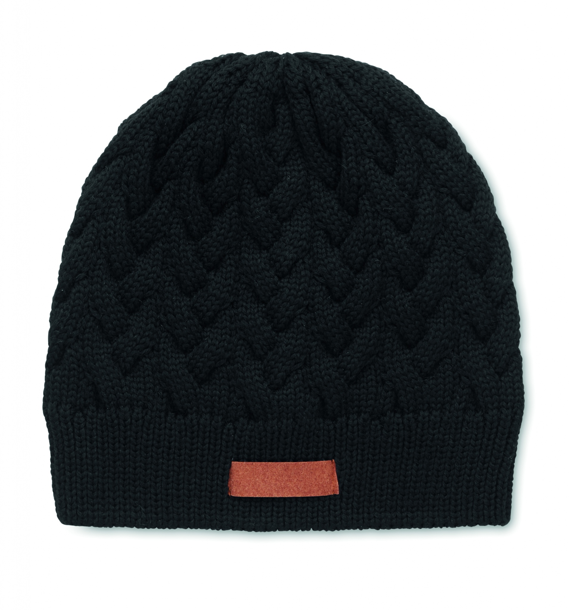 Logotrade reklamprodukter bild: Kabelstickad mössa i RPET