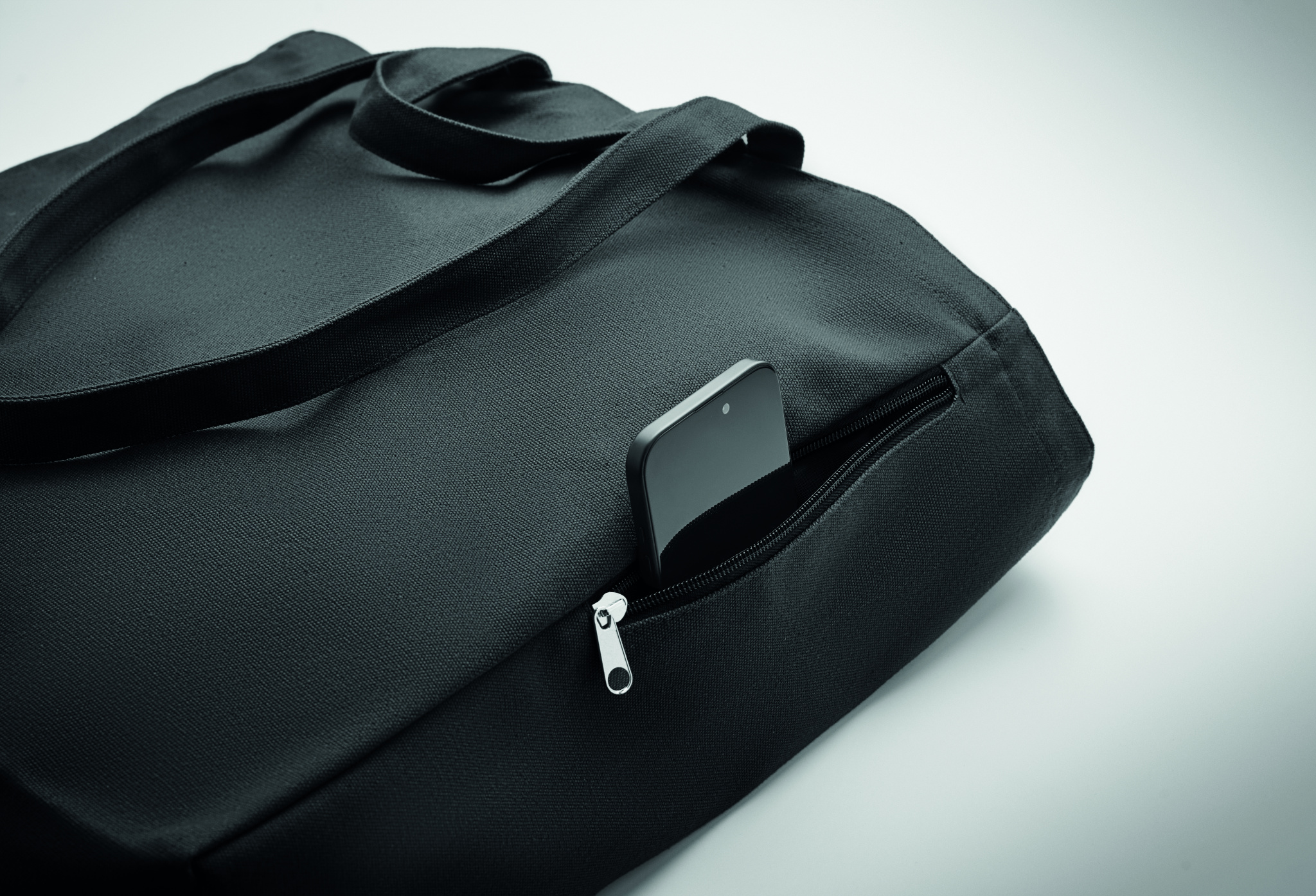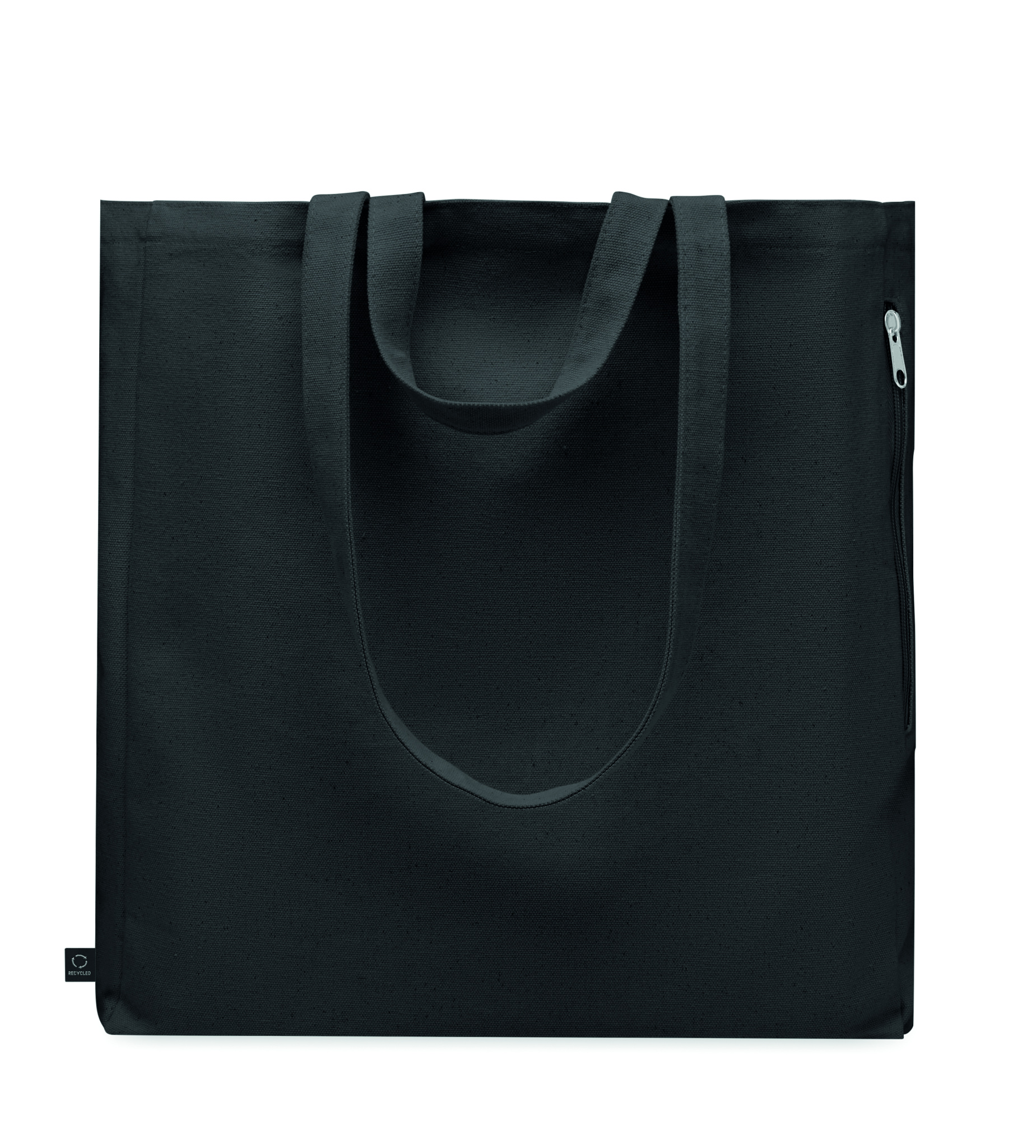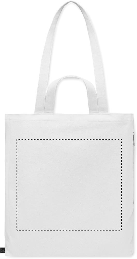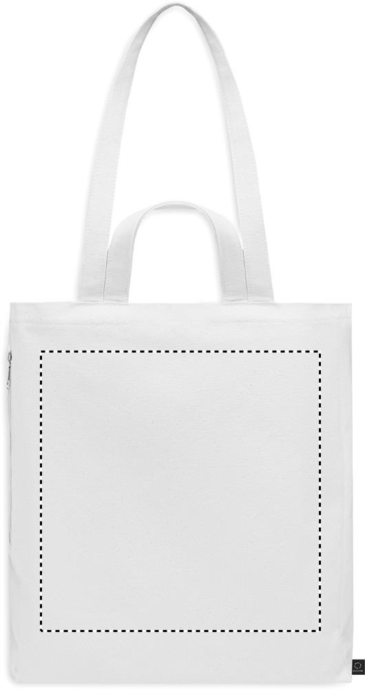 Tygkasse eller strandväska av återvunnen polycotton (70 % återvunnen bomull, 30 % återvunnen polyester) med korta handtag. Den har en sidoficka med dragkedja.380 gr/m².
