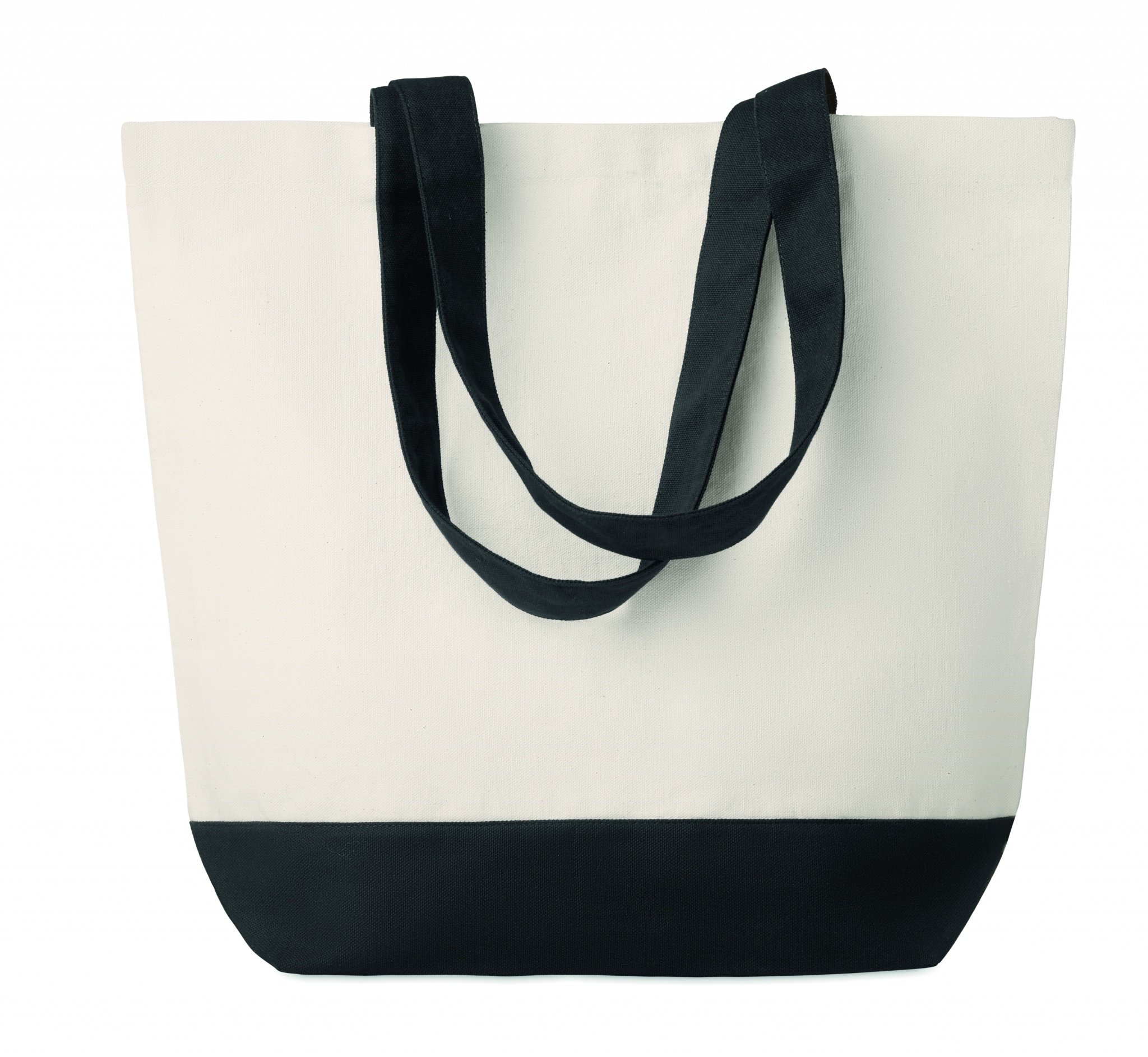 Strandväska i 170gsm bomull med kontarst färgad botten och handtag. Innerficka