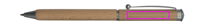 Twistmekanism träkulpenna med blåskrivande metallpåfyllning och träfodral. Din logotyp är graverad under klämman.