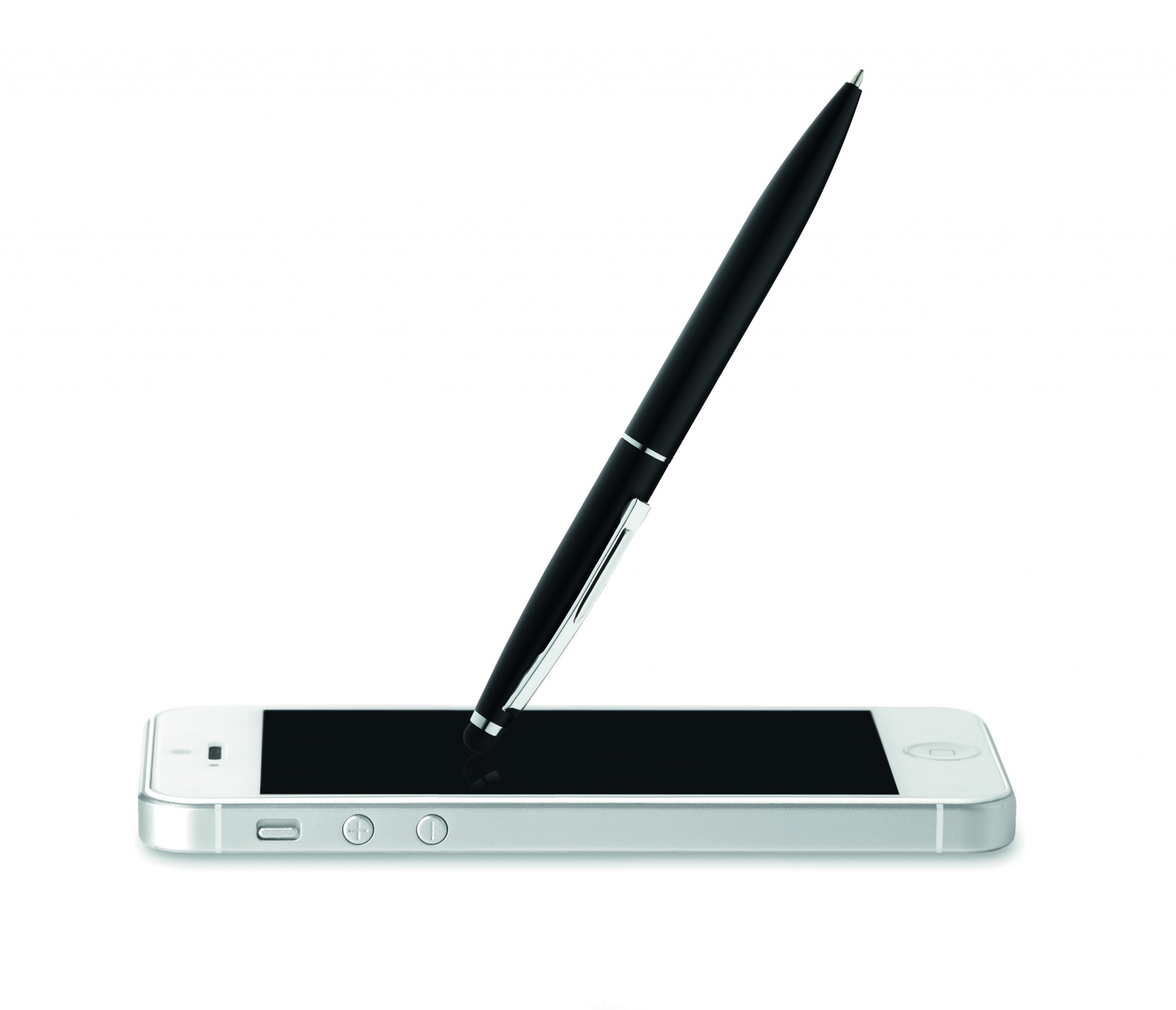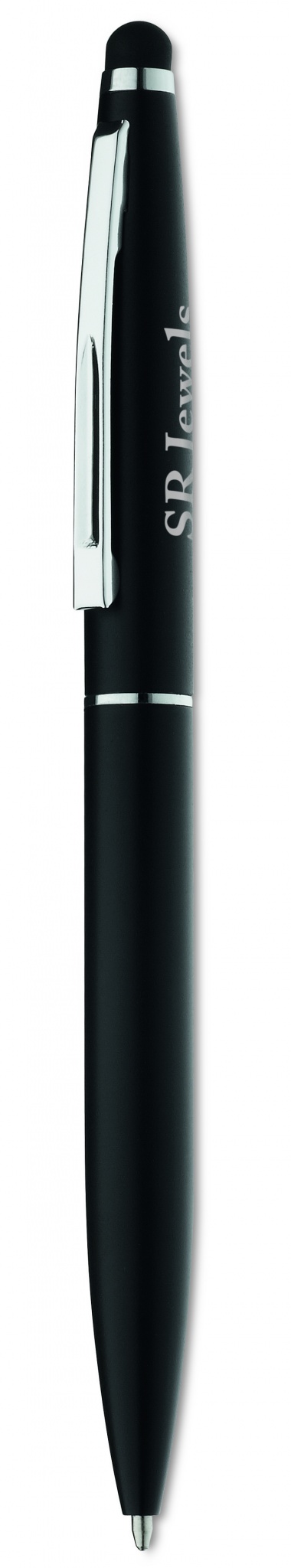 Aluminium kulspetspenna med touchscreen spets. Blått bläck.