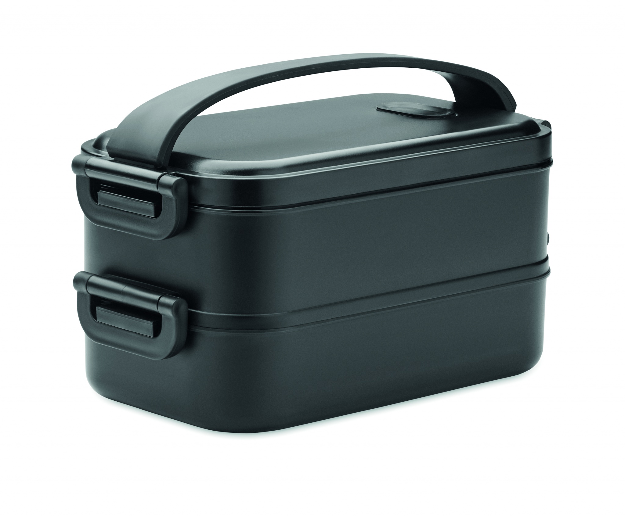 Tvådelad lunchlåda i återvunnen PP med avtagbar avdelare med sidospännen och lufttätt lock. Kapacitet: 800 ml (2x).