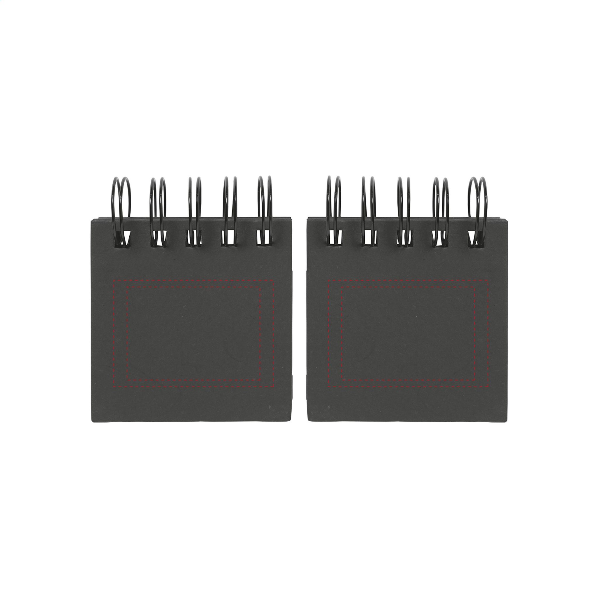 Block med ca. 75 självhäftande PM-ark och 125 skrivbara märkningsklistermärken i olika färger. Överdrag av återvunnen kartong. Inbunden i iögonfallande wire-o-bindning av metall.