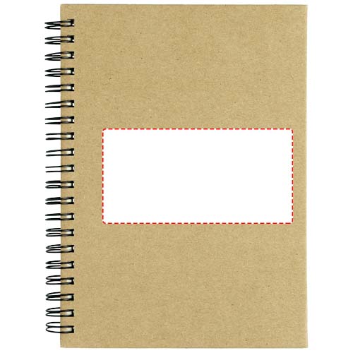 Spiralbunden anteckningsbok med omslag av återvunnet papper, 60 linjerade blad av återvunnet papper (70 g/m²) .
