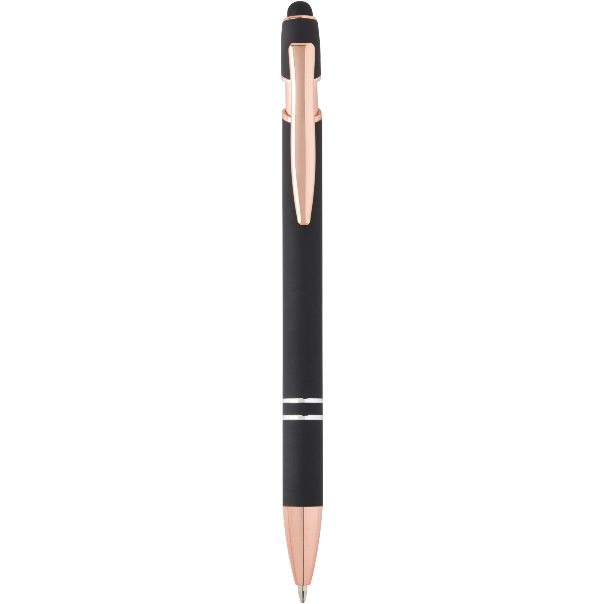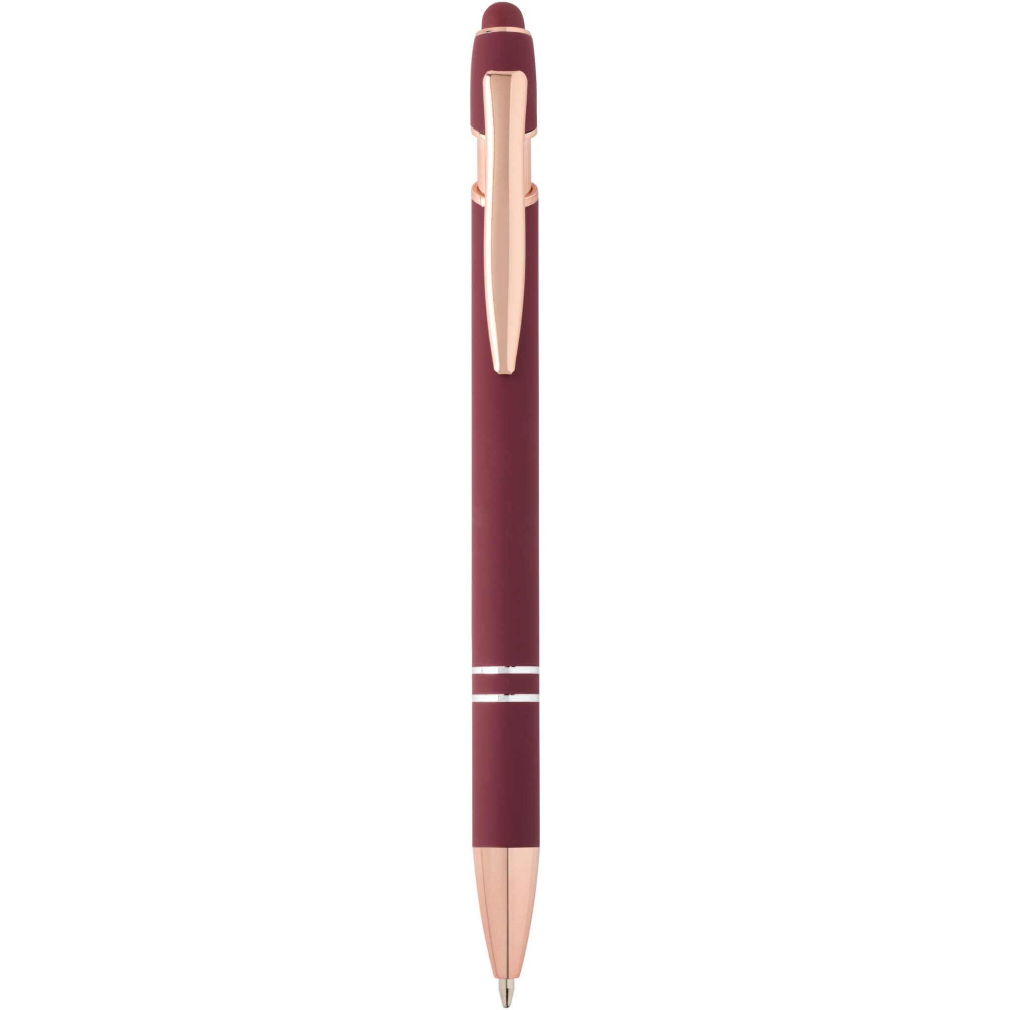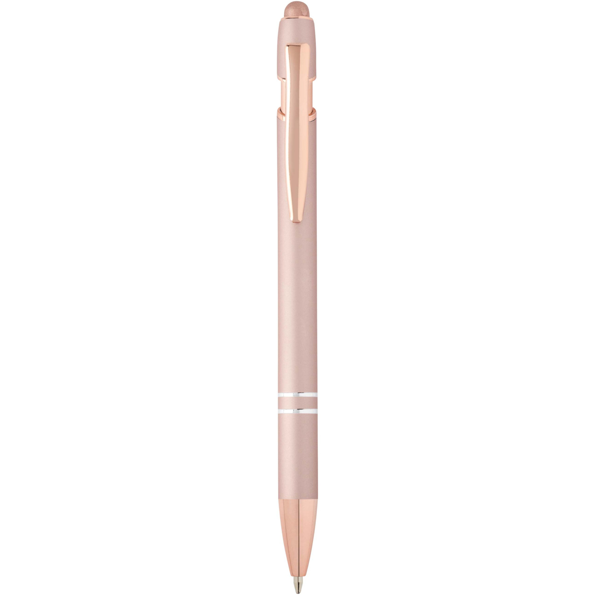 Kulspetspennan Nanna med finish i roséguld har en pennkropp av återvunnen aluminium och en touchpenna av silikon. Det återvunna aluminiumet minskar också mängden avfall i deponier och bidrar till att bevara naturresurser med syftet att minska växthusgasutsläppen. Bläckfärg: Blå. Skrivlängd: 800 meter. NIB-storlek: 1,0 mm.