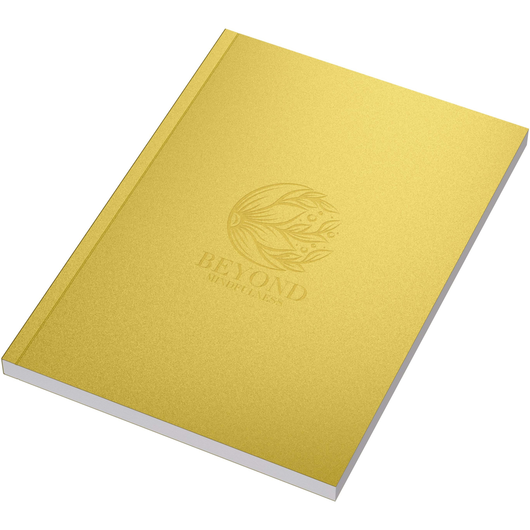 Anteckningsboken Novella Austen A5 med mjukt metallomslag är en fantastisk anteckningsbok tack vare sin mångsidighet. Anteckningsblocket har 100 ark 80 g/m² papper. Arken är blanka som standard, sen kan du lägga till din egen valda design på arken, t. ex. linjer, rutor eller din egen anpassade design. Metallomslaget är tillverkat av 300 g/m² kartong och kan tryckas i fullfärg över hela omslaget (fram- och baksida, rygg). Tillverkad i Storbritannien.