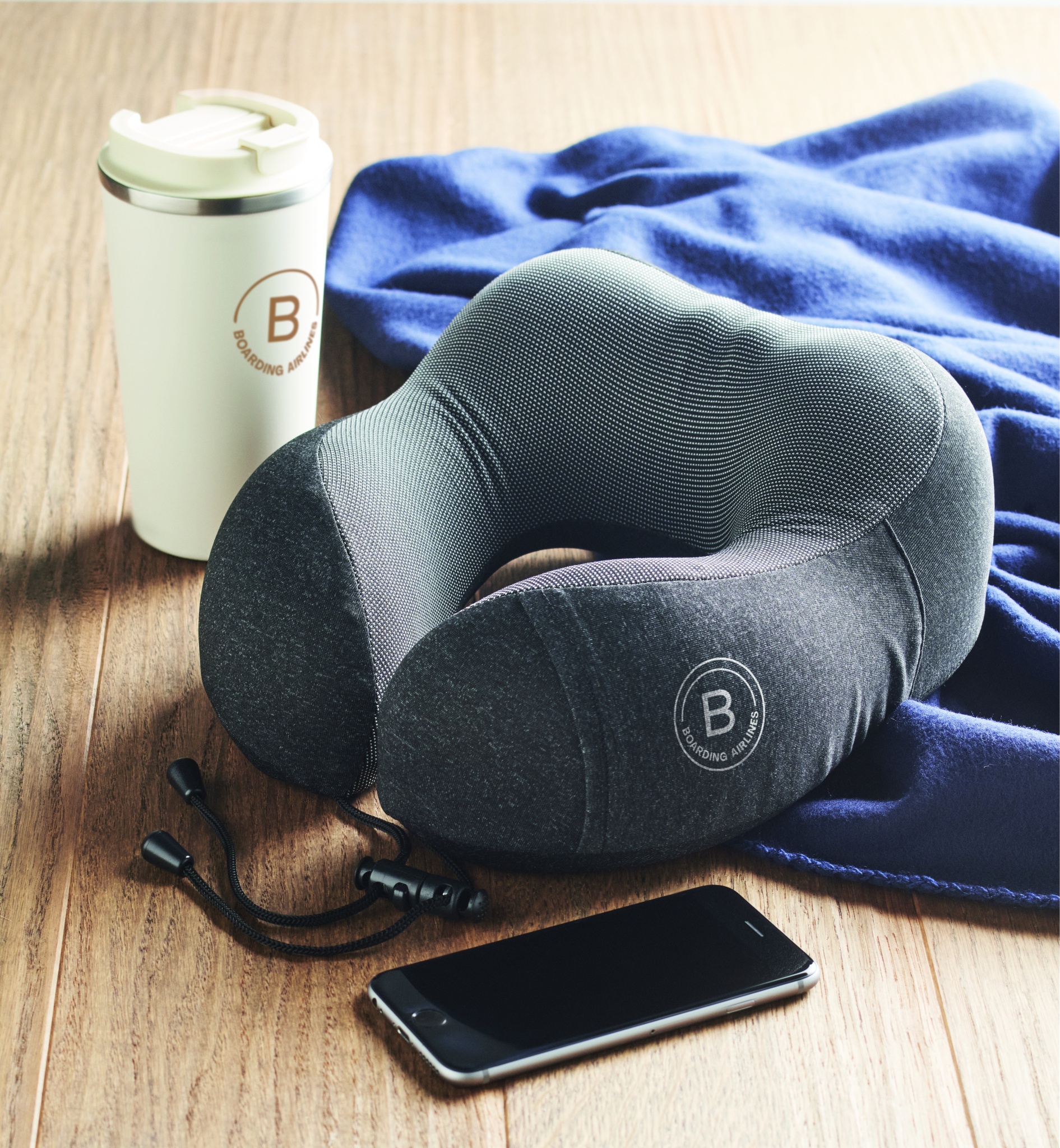 Resekudde i ett 2-färgat starkt kationiskt tyg inklusive påse i RPET. Populär för användning under resan i bil, tåg eller flygplan.