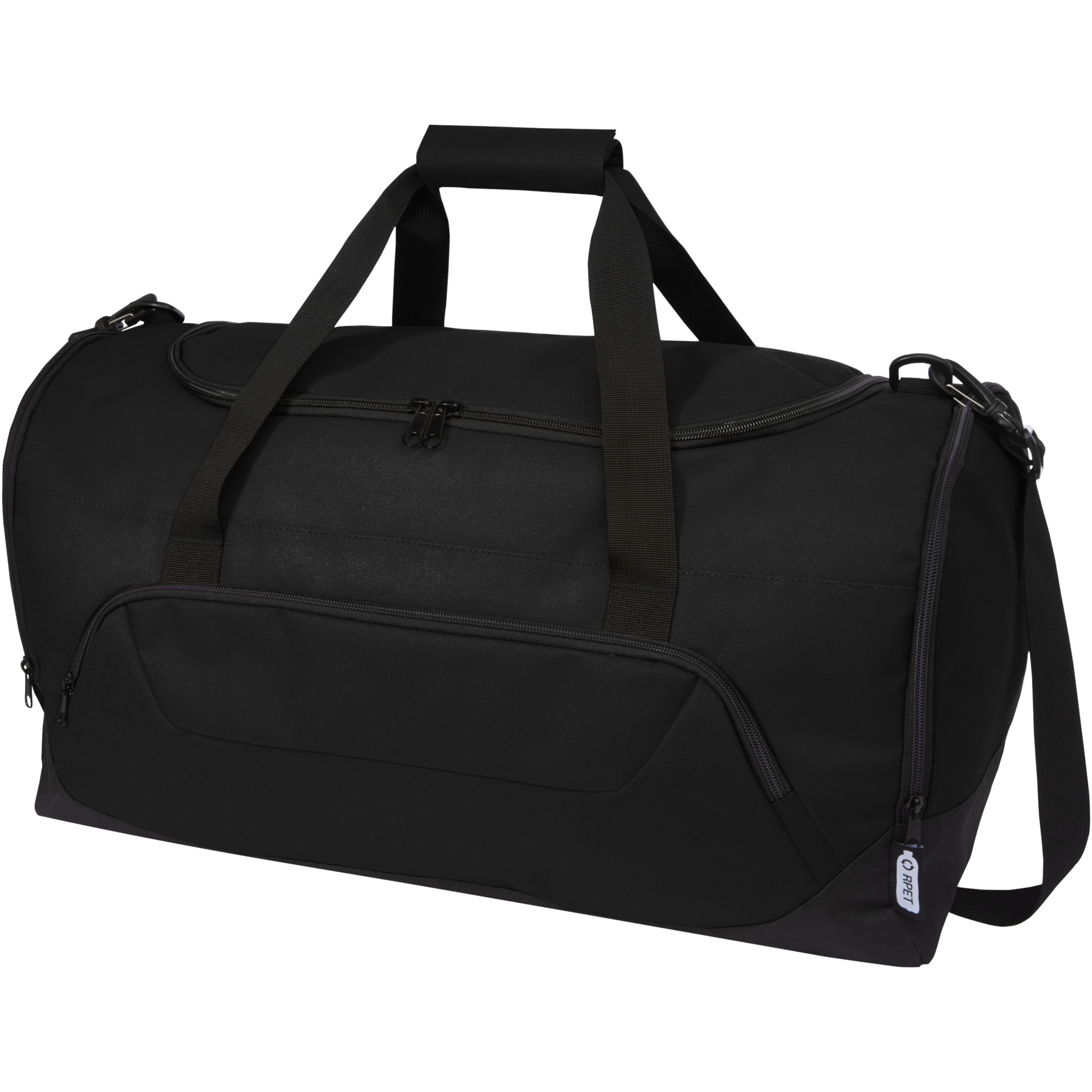 Tålig duffelväska tillverkad av 100 % återvunnen plast som bidrar till att minska plastavfall. Har stort huvudfack och blixtlåsficka framtill, vadderad axelrem och vadderade handtag. Cirka 27 flaskor återvinns för att göra den här väskan.