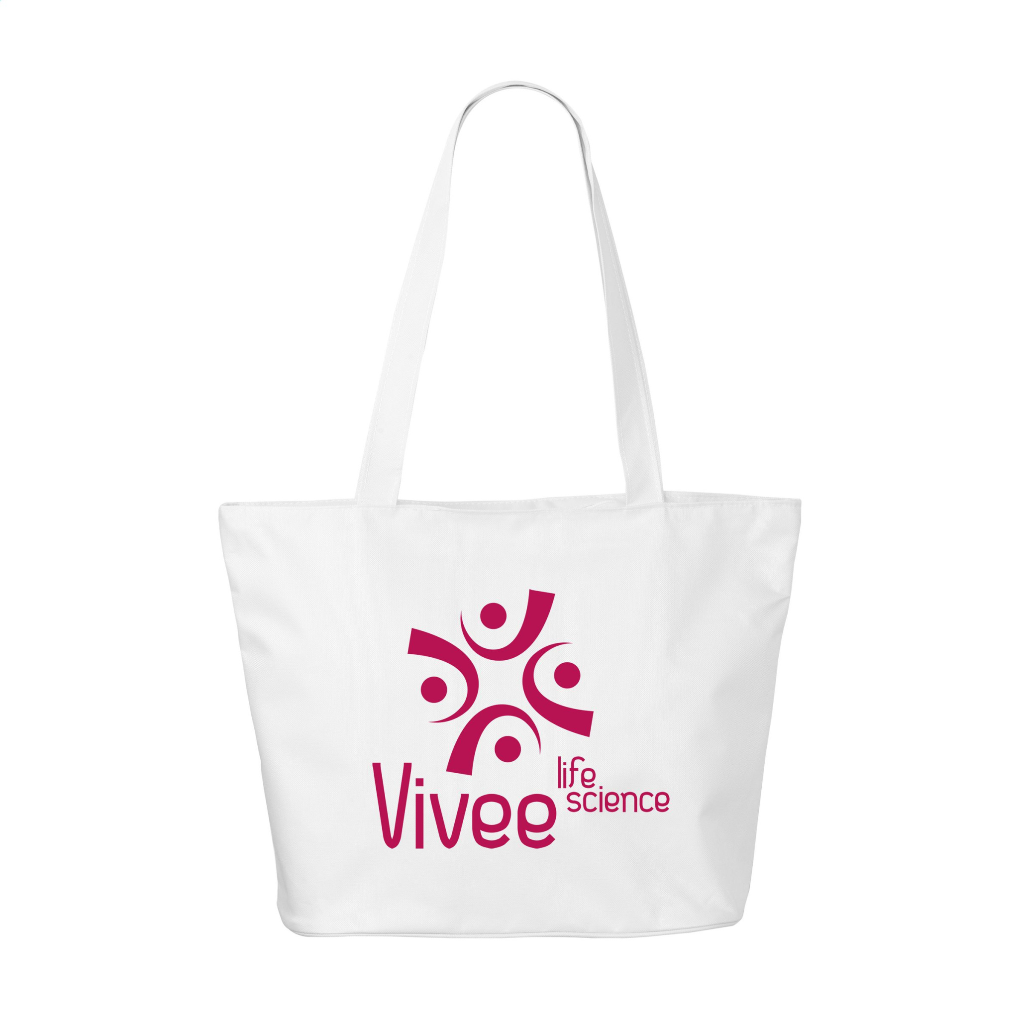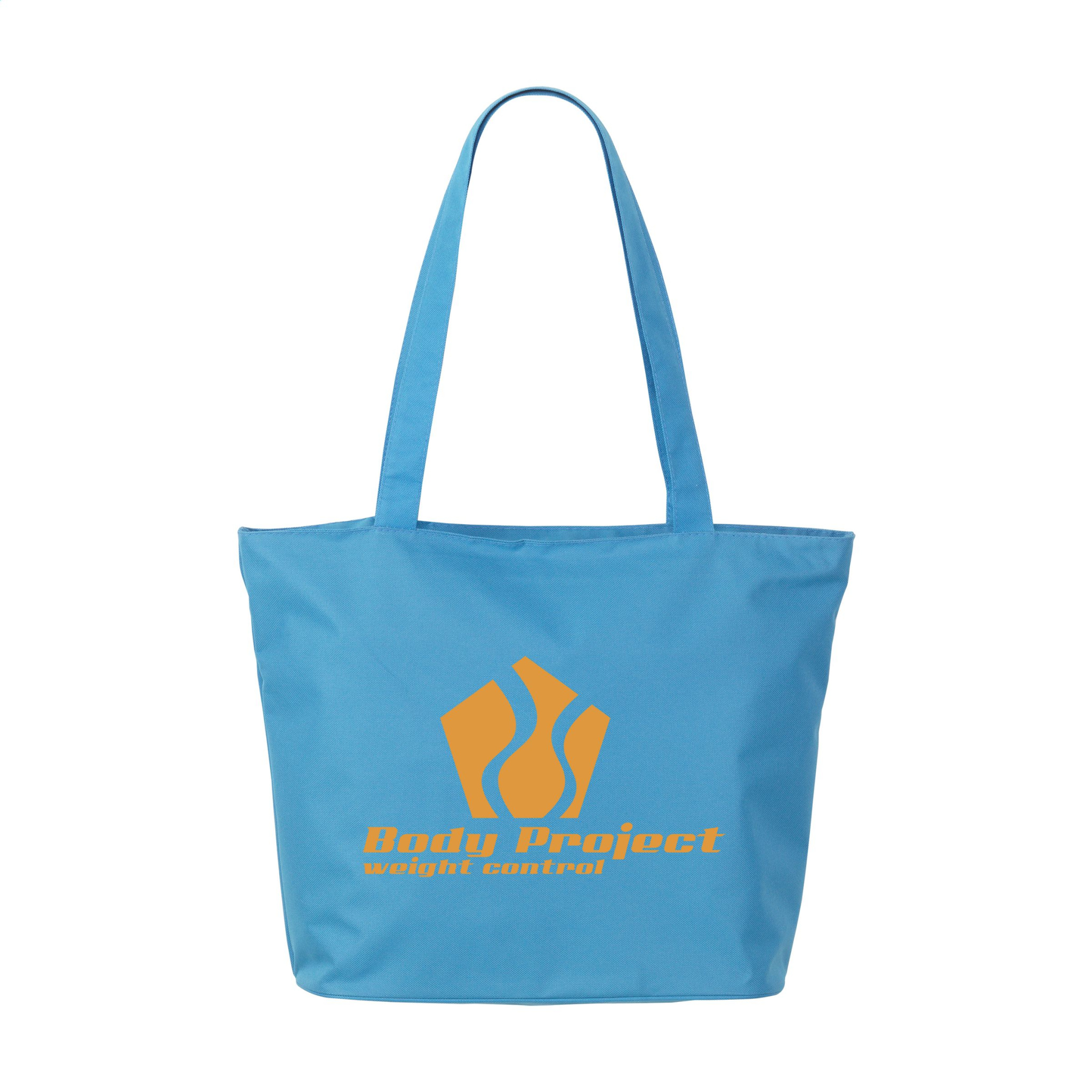 Vacker, robust väska av 600D polyester med förstärkt insida, långa handtag, dragkedja och förvaringsficka med dragkedja. Den breda botten har en vacker och elegant finish med runda passpoaler. Multipurpose användning som shopper, shoppingväska och strandväska.