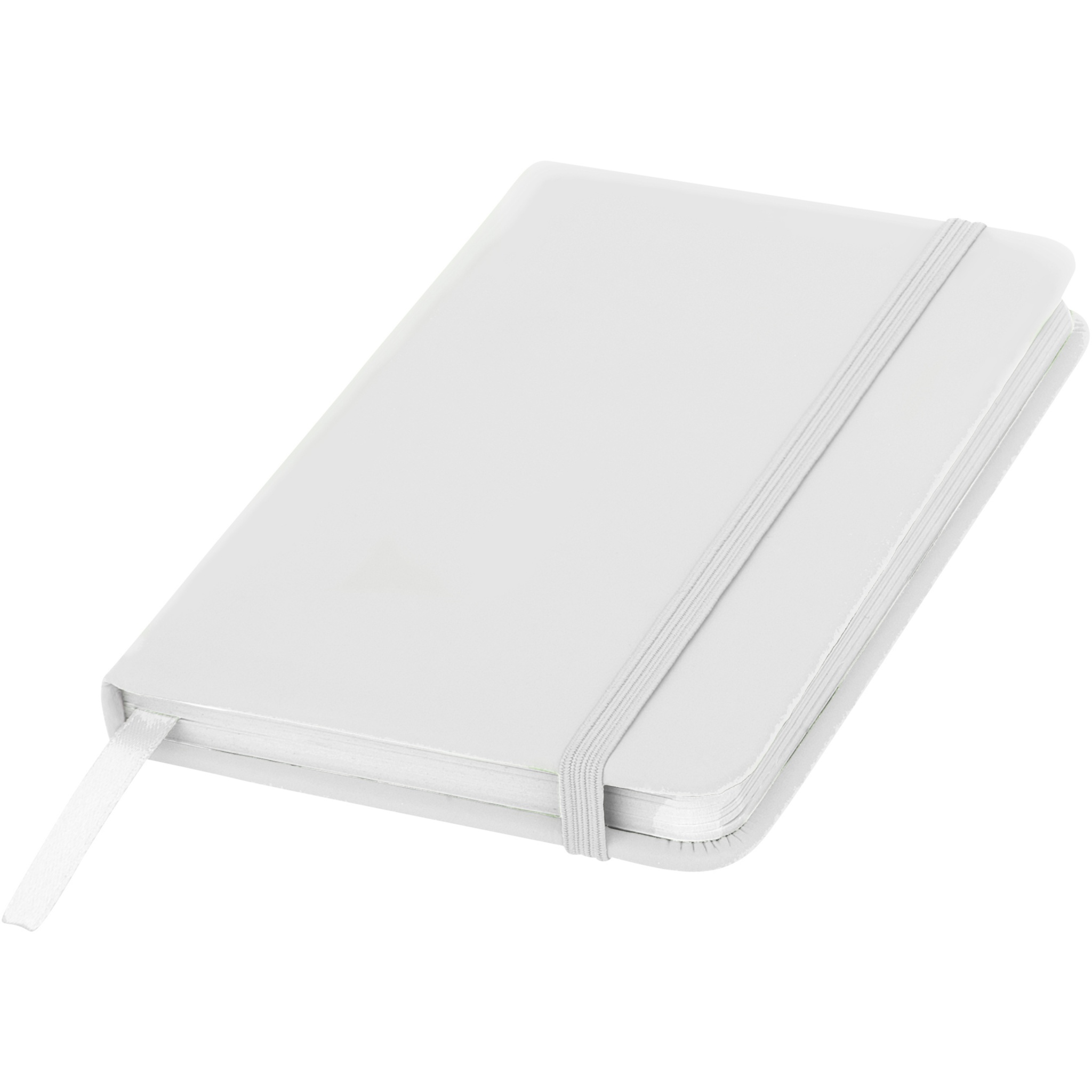 Förutom att Spectrums anteckningsbok är en viktig kontorsvara är den också ett utmärkt objekt för att marknadsföra ett varumärke. Den hårda anteckningsboken består av kartong som är täckt med ett PVC-omslag med mjuk touch. De 96 linjerade arken av 60 g/m² som är tillverkade på ett ansvarsfullt sätt är idealiska för att anteckna snabba idéer eller långa anteckningar. Referensstorleken A6 är praktisk, eftersom den passar smidigt i en vanlig väska och är lätt att hålla i handen. Bandet på bokmärket och den elastiska stängningen är i samma färg.