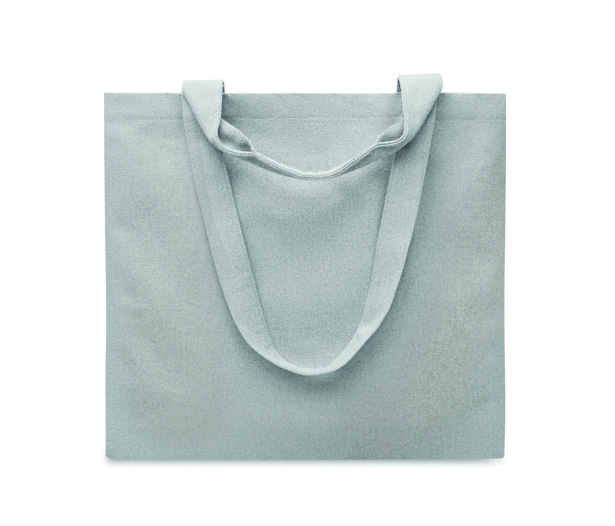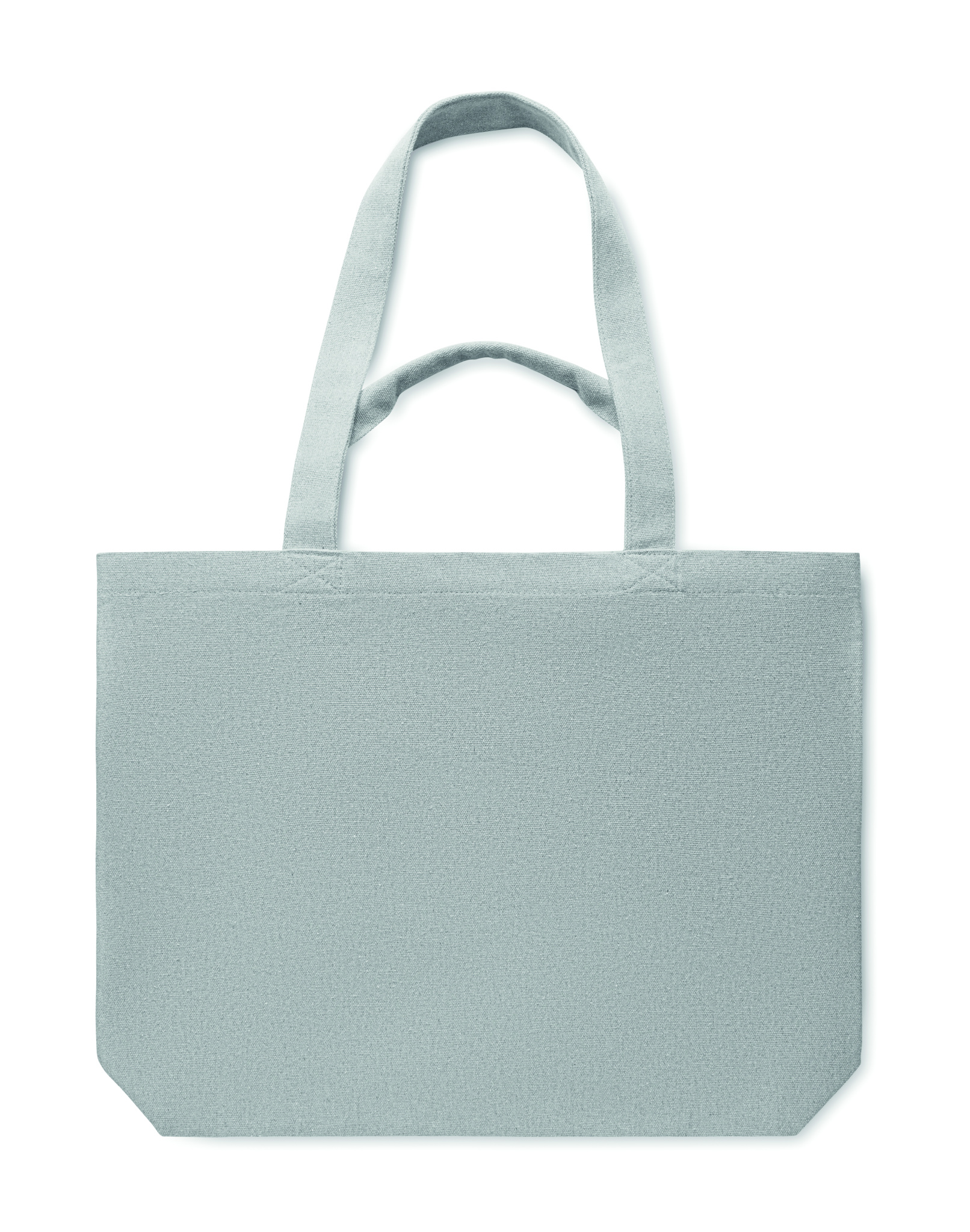 Kasse-/strandväska i återvunnet tyg (60% återvunnen bomull, 40% återvunnen polyester) med korta och långa handtag. 320 gr/m².