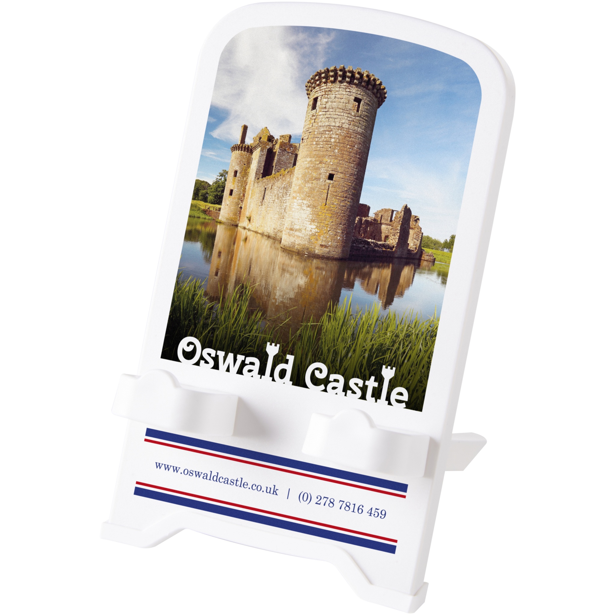 Det här telefonstället är perfekt för alla som arbetar hemifrån och ett viktigt skrivbordstillbehör. Denna praktiska sak kommer att hålla telefonen i närheten hela tiden, redo för videosamtal, titta på videor eller helt enkelt komma ikapp på sociala medier. Den vita baksidan är tillverkad av återvunnen plast och stativet är utformat för att möjliggöra laddning av enheten medan den är på stativet. Levereras plattförpackad i en presentförpackning, med låg profil vilket gör den idealisk för utskick. Tillverkad i Storbritannien.