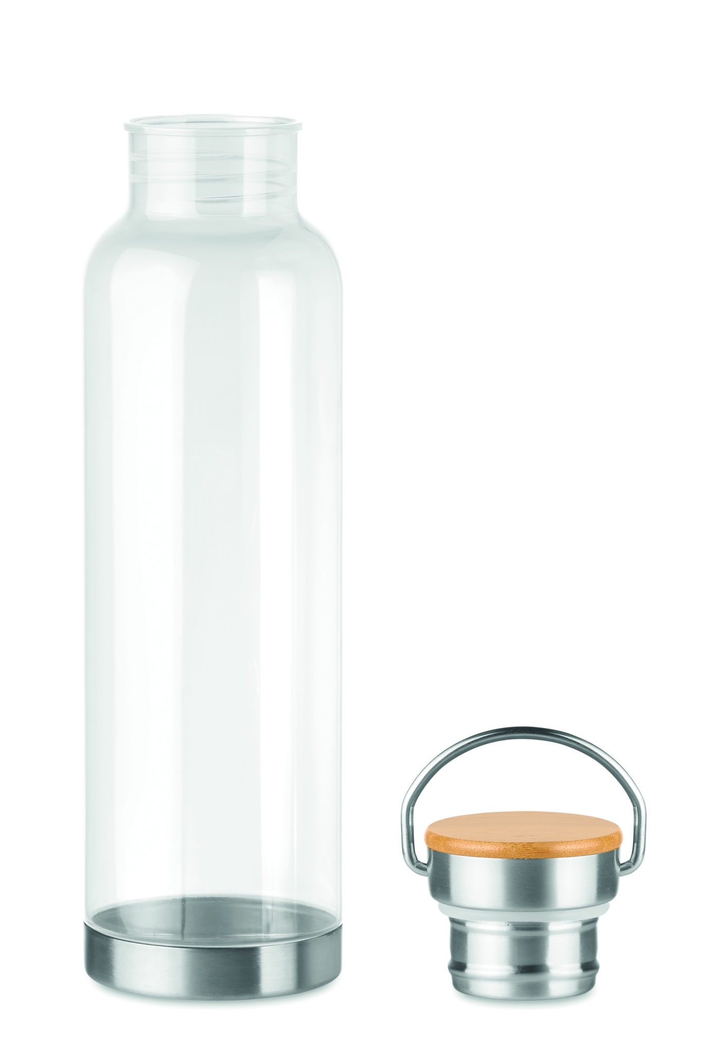 Tritan flaska med botten i rostfritt stål och lock med bambu detalj. Eftersom bambu är ett naturligt material kan färgen per artikel variera. Läckagefritt. Volym 800ml.