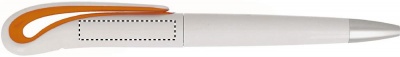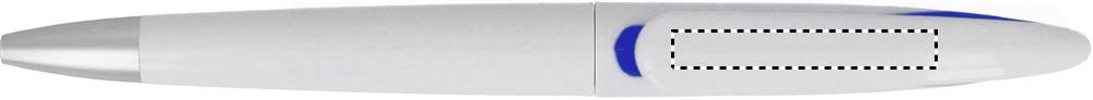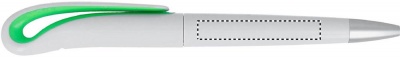 Kulspetspenna med vridmekanism i ABS plast. Clipset påminner om formen av en svan. Blått bläck.